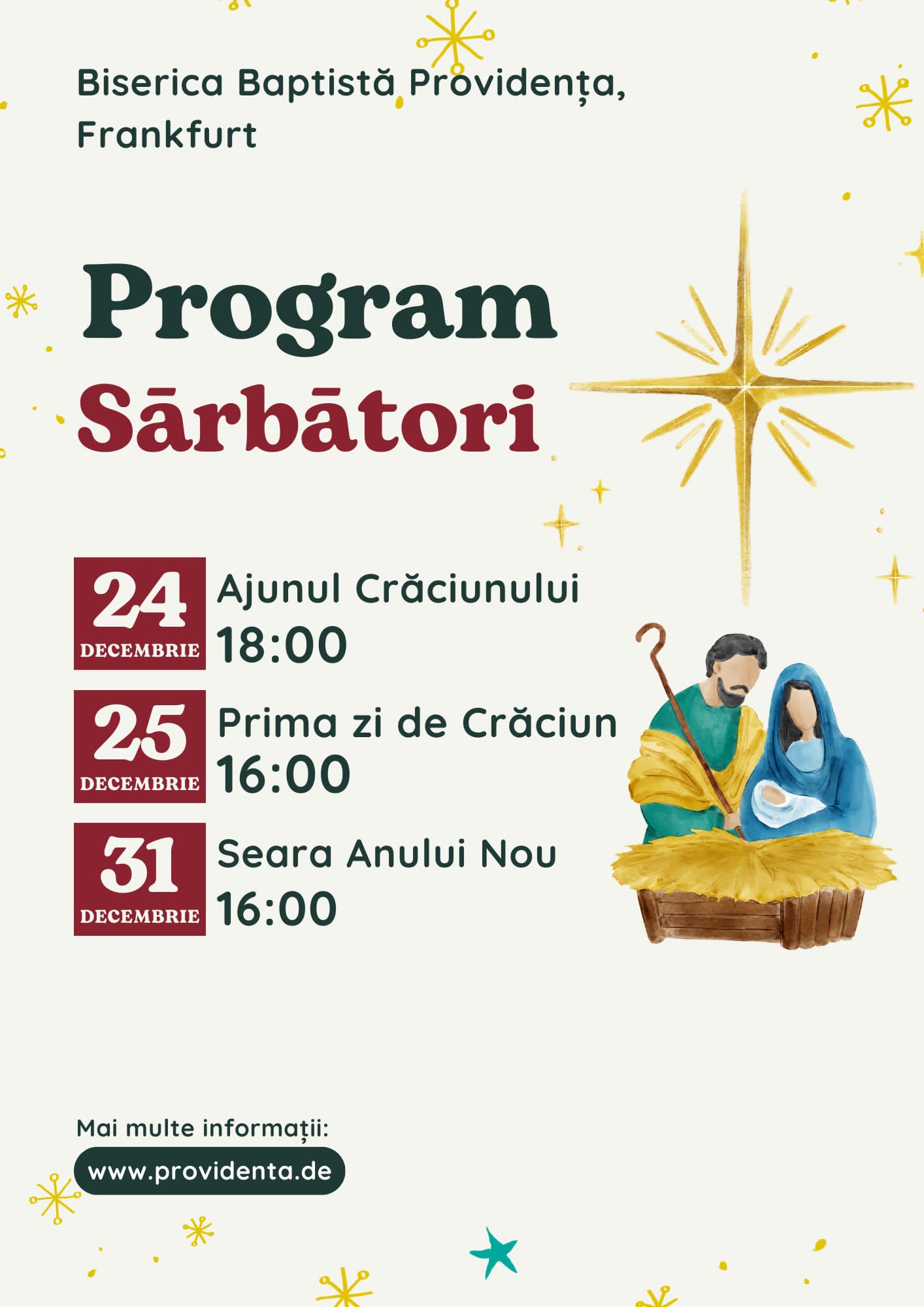 Dragi frați și surori, iubiți vizitatori duminică 10.12.2023 ne vom întâlni dimineața de la ora 10:00.